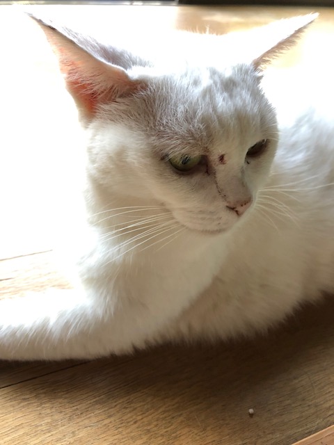 縁側で網戸越しに外を眺めるのが日課の我が家のにゃんこ。