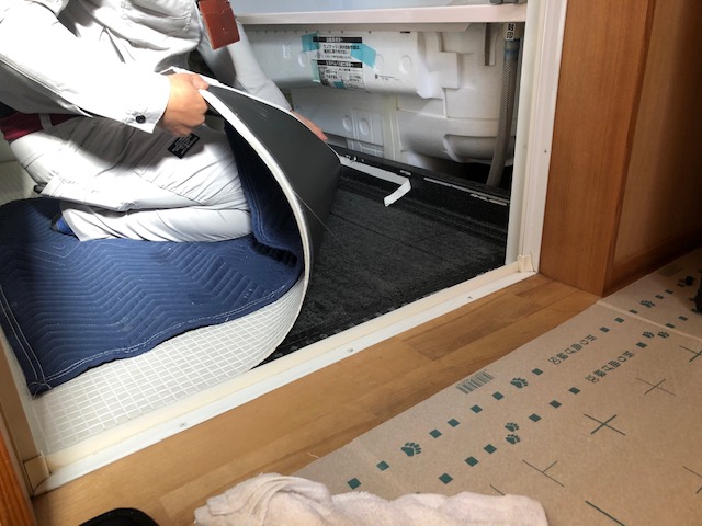 新しい床材を貼る前に下貼りのゴムのマットのような物を