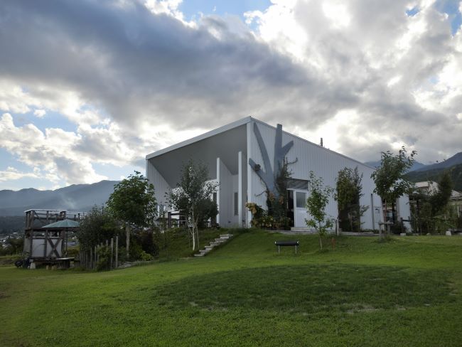 建物の周りには、コツコツと植えた樹木や芝が根付き、
