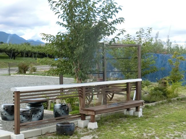 手作りの展望デッキやベンチ、メダカ池などのガーデニングが、
