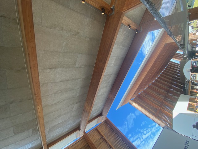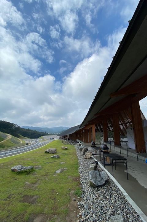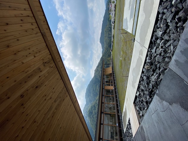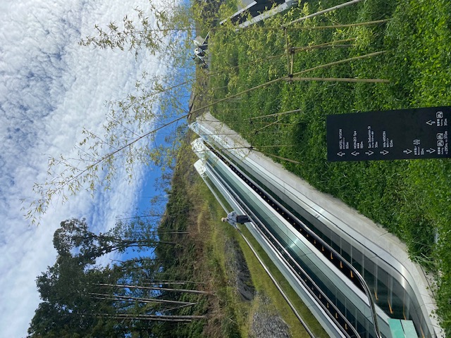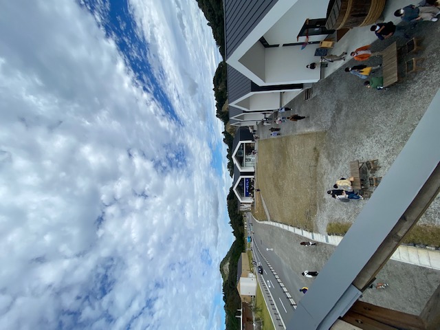 丘陵沿いにエスカレーターを登ると宿泊施設や