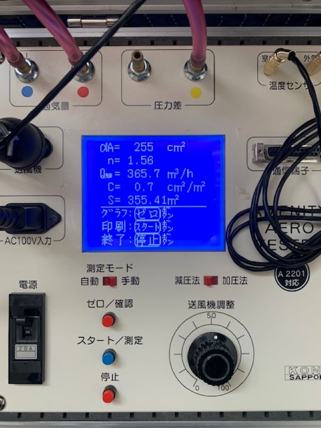 中間と完成時の2回、気密測定を行い