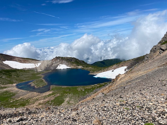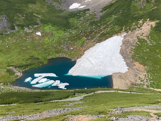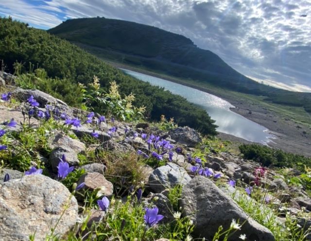 様々な高山植物も咲いている鶴ヶ池の脇を通り