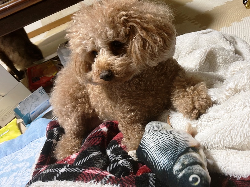 わんちゃんとおもちゃを取り合ったりしています 笑