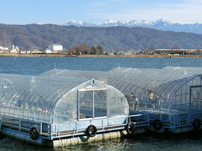 ワカサギの釣り場の様子を見に諏訪湖に出掛けました。