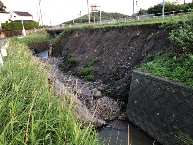 用水路が決壊し水路を塞いで氾濫寸前でした。