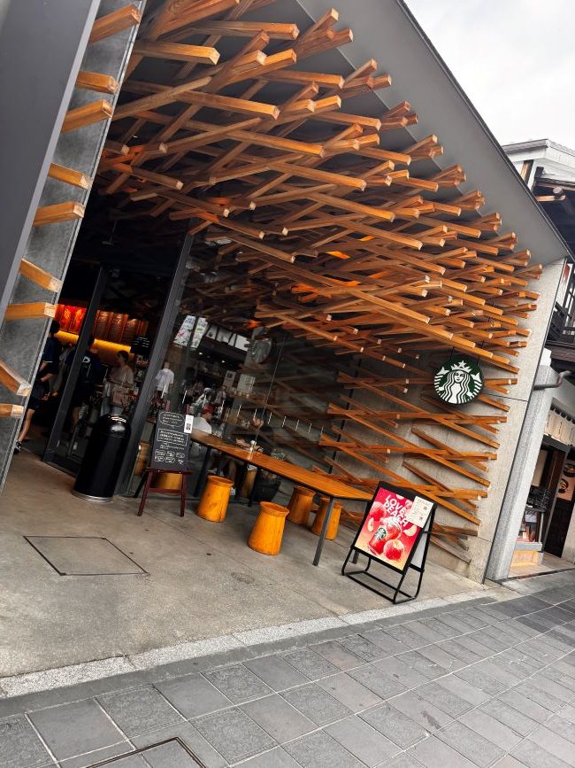 店内も同じような雰囲気でしたが壁一面に木組みがしてあって圧巻でした。