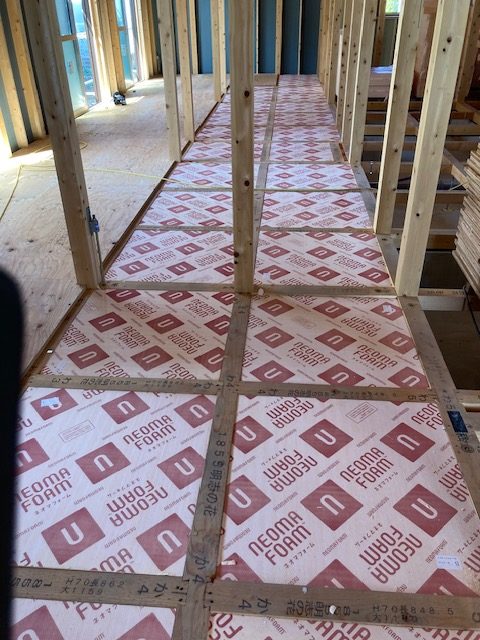 その上に構造用合板を貼り、ジョイント部分に気密テープ貼り