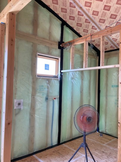 壁内にも断熱材を入れ、気密シート全面貼りをし