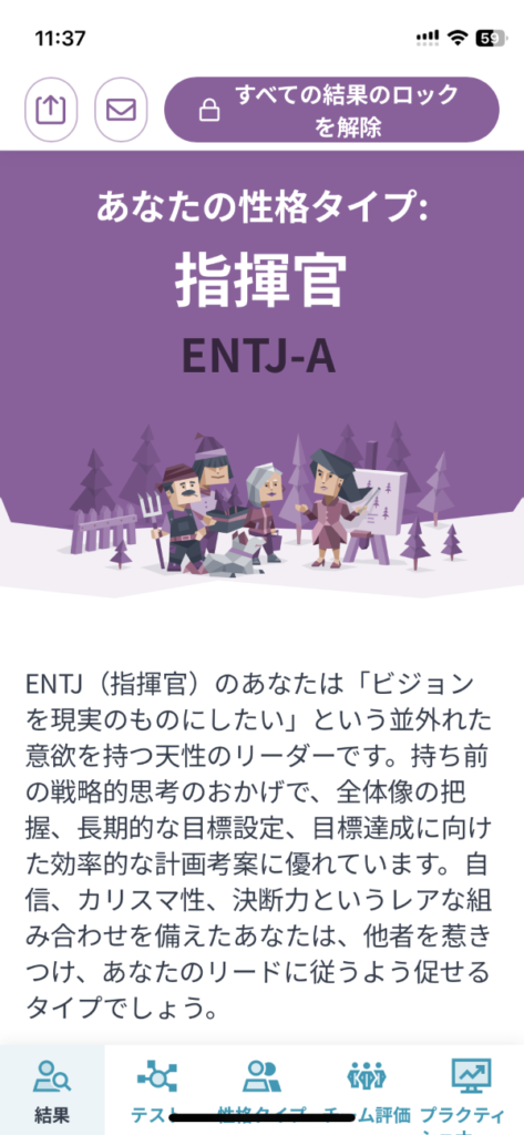 ちなみに自分は「ENTJ-A」の指揮官タイプでした。