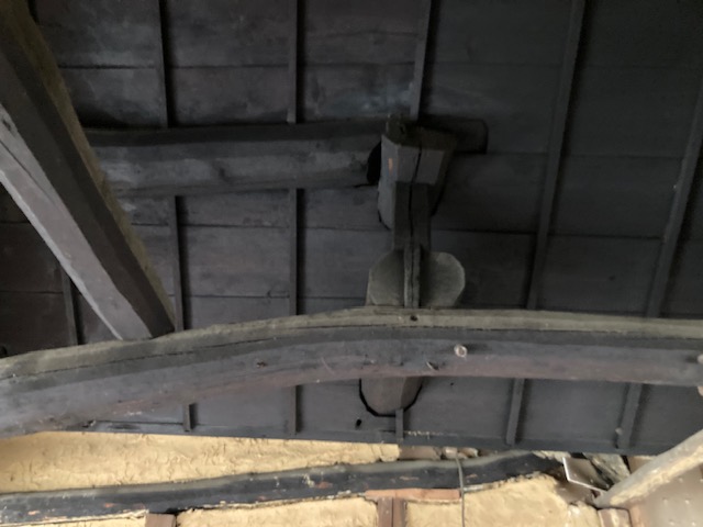 吹抜き部分の小屋組も大きな丸太の梁や桁 野地板など