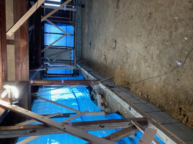 土台でつながっていたため、当初の補強方法を変更することとなりました。