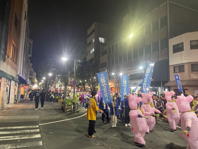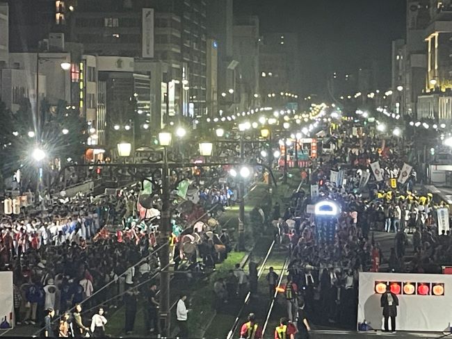 駅前大通などの道路を賑やかに、練り歩きながら踊ります。
