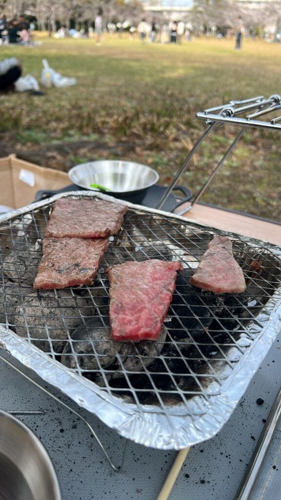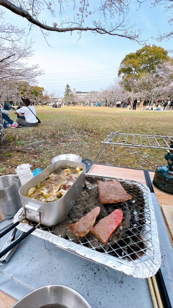 近所の向山緑地公園へお花見BBQに行ってきました!