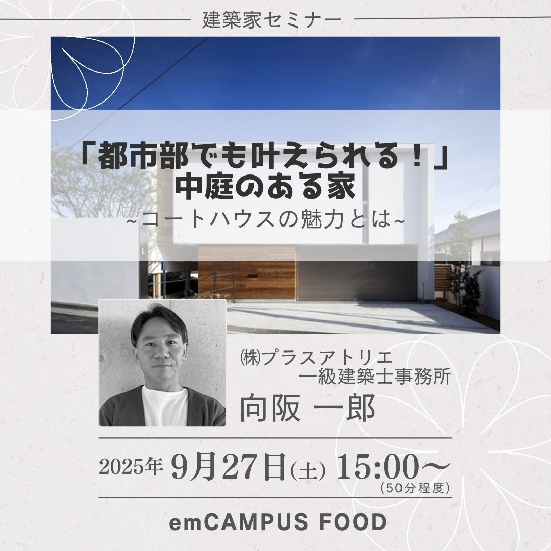 【セミナー】「都市部でも叶えられる!中庭のある家」~コートハウスの魅力とは~