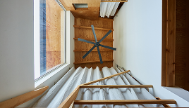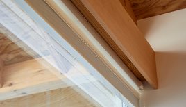 このリビングの大開口部分、そして2階にもガラスがあります。僕は外とのつながりをつくりたいのですが、正直どう納めたらいいか笑