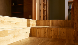 ※下駄箱は家具屋さん、建具は建具屋さん、左端の浮いている木箱は大工さんが手掛けた。