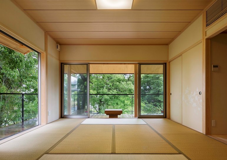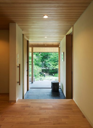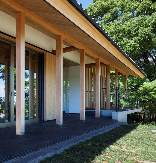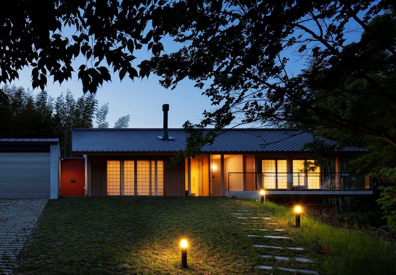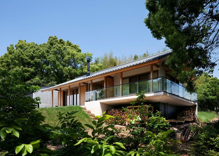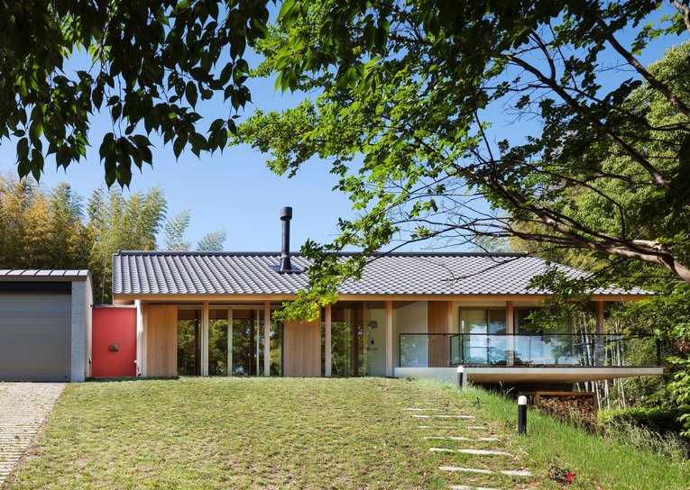 丘陵地の自然にとけ込む平屋の邸宅