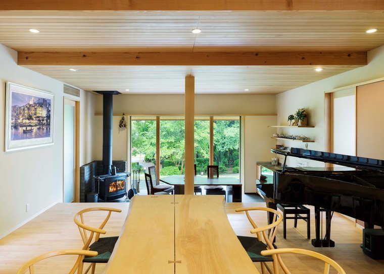敷地内には広葉樹や竹が生い茂り、家中のどこからでも緑を楽しむことができます。