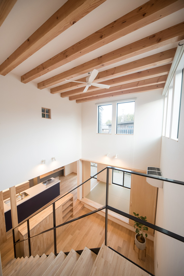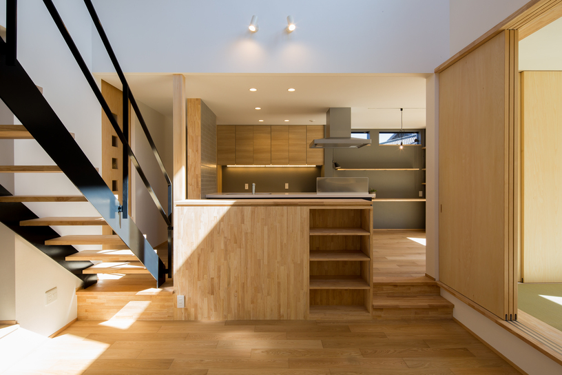 廻る間取りに高低差が生まれ、広がりのある空間となりました。