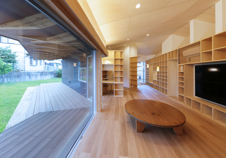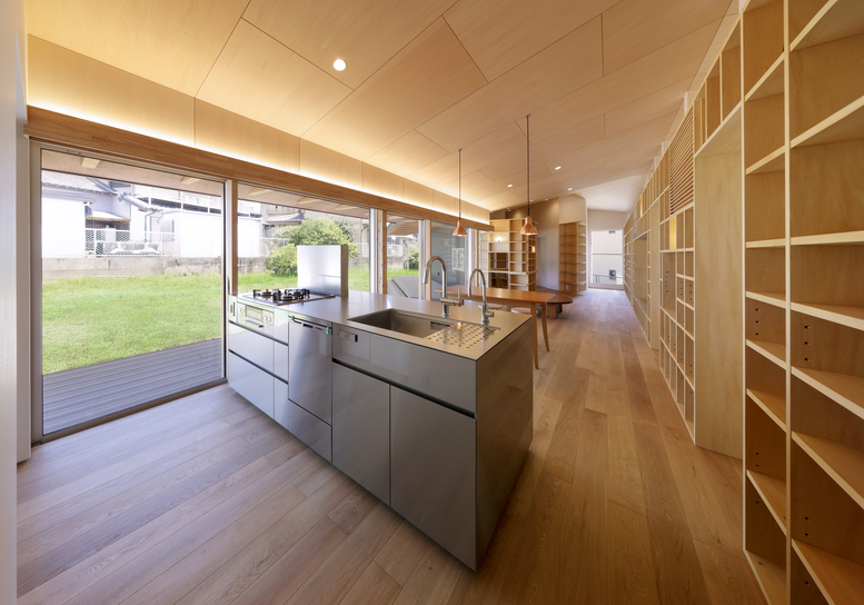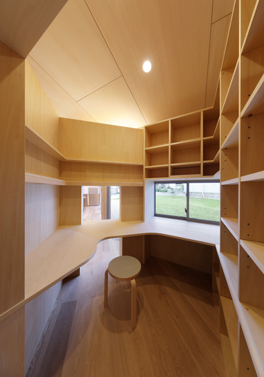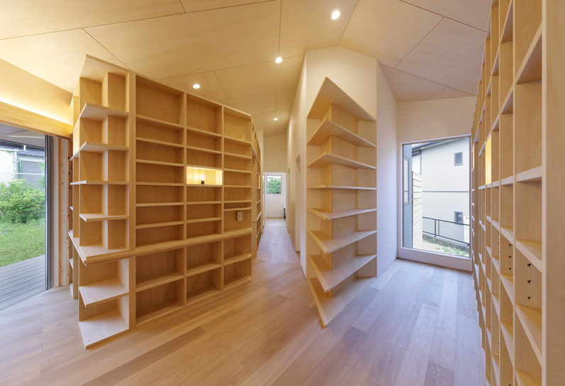 仕事柄多くの本が必要なご主人と、色々な場所で本を読むことができる家族のための住宅です。