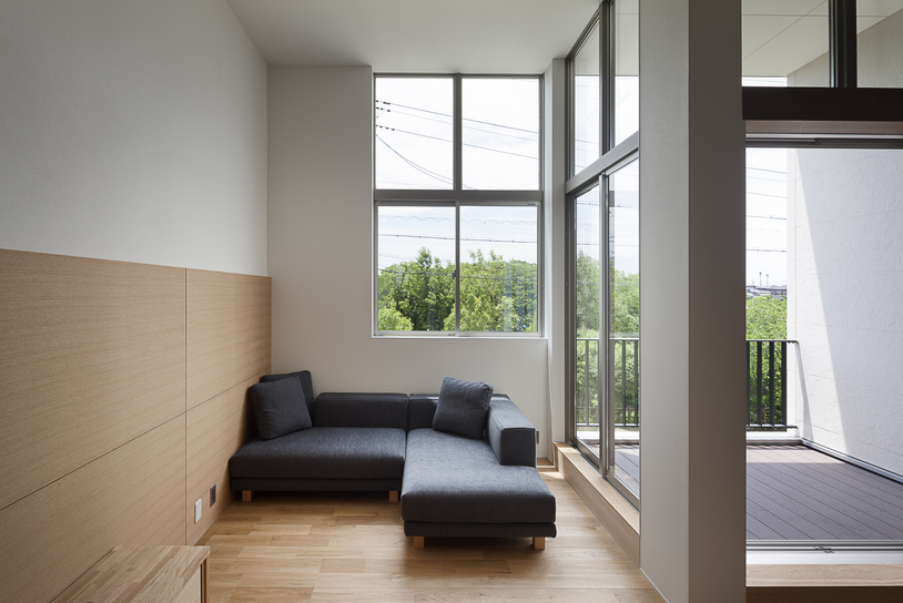 スキップフロアの段差から生まれる各スペースの視覚的な広がりが、朝倉川沿いの桜並木と繋がって 季節の移り変わりを感じられるように・・・